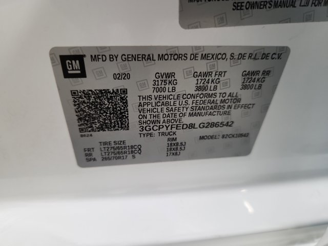 - VIN: 3GCPYFED8LG286542